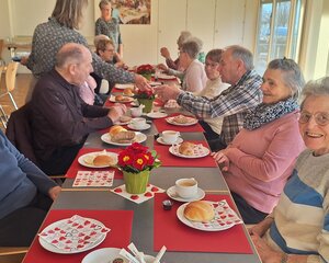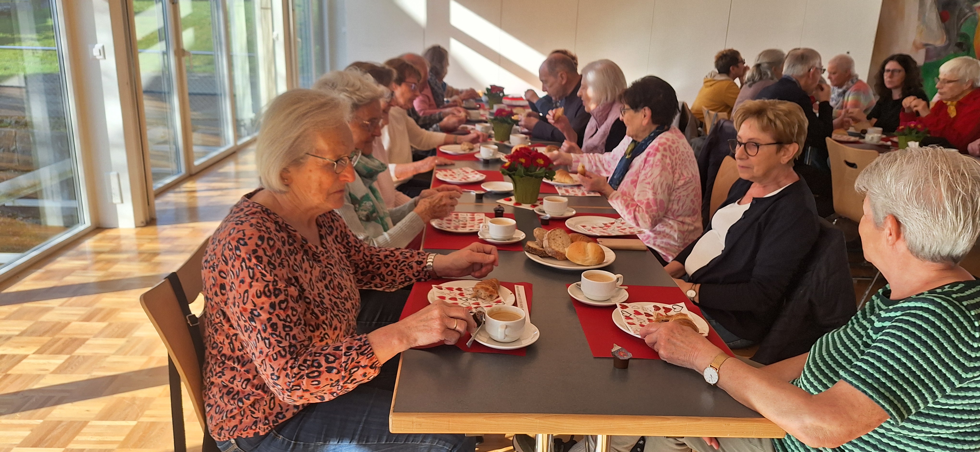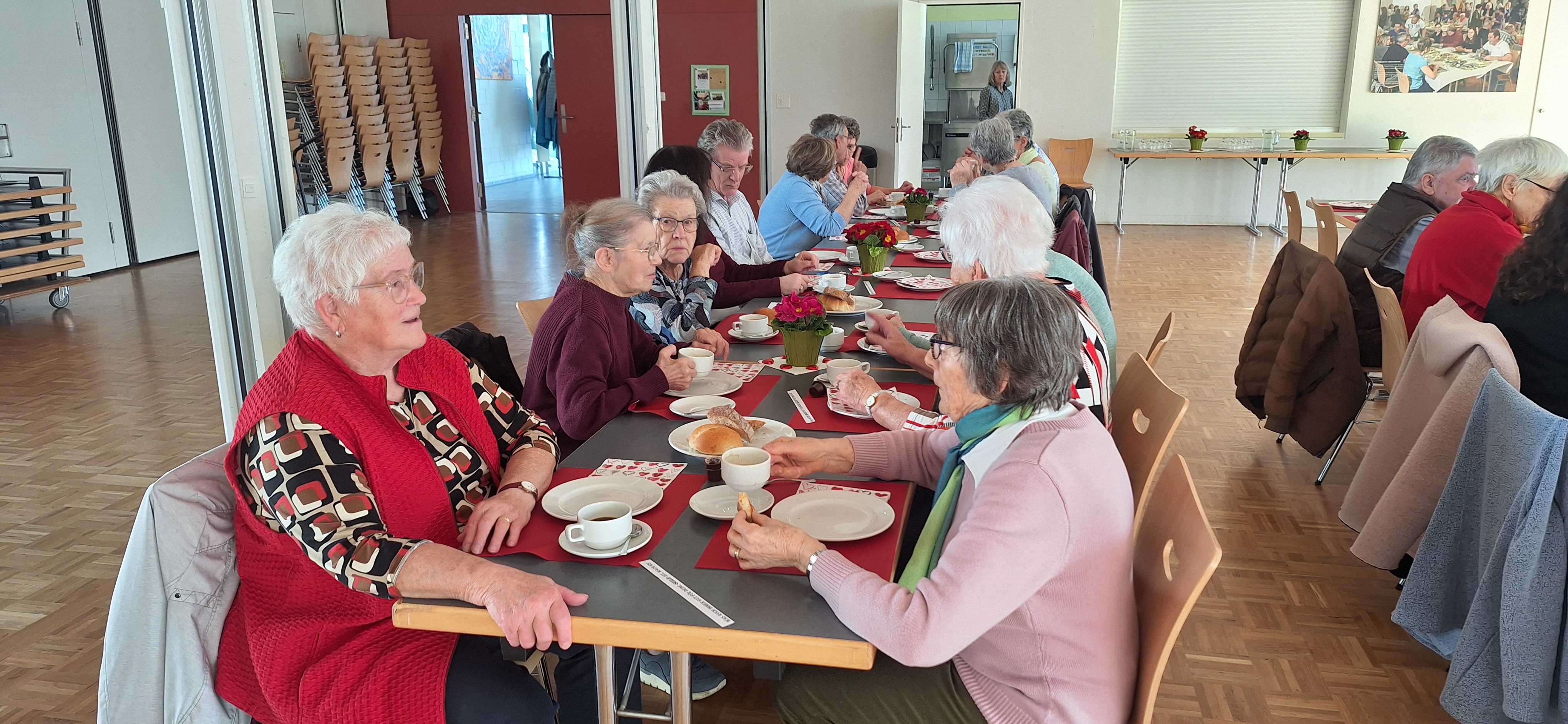 Nach dem Gottesdienst wurden die zahlreichen Teilnehmer ins Pfarreizentrum Oase eingeladen. Dort wurde ihnen von den freiwilligen Helferinnen des Frauenvereins Kaffee, Gipfeli und Brötchen angeboten.
