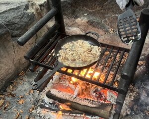 Nach der Erntetour kehrten wir zurück zur Brätelstelle und die gesammelten Pilze wurden zu einem feinen Risotto verarbeitet.