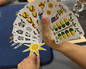 Der vergangene Spiele-Abend im Pfarreizentrum Oase war ein voller Erfolg, der nicht nur die Karten fliegen, sondern auch die Lachmuskeln ordentlich trainieren liess. Bei einem bunten Mix aus klassischen Spielen wie Jassen, Dogen, Ligretto und dem legendären „Stadt Land Vollpfosten“ wurde viel mehr als nur der Sieger gefeiert – vor allem der Spass und das gemeinsame Miteinander standen im Vordergrund.