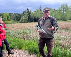 Der Weg führt die Gruppe weiter ins «Heubeerimoos». Dies ist ein Hochmoor von nationaler Bedeutung und ein wahres Bijou für Flora und Fauna. Sogar die Stockenten sind dort wieder heimisch geworden.